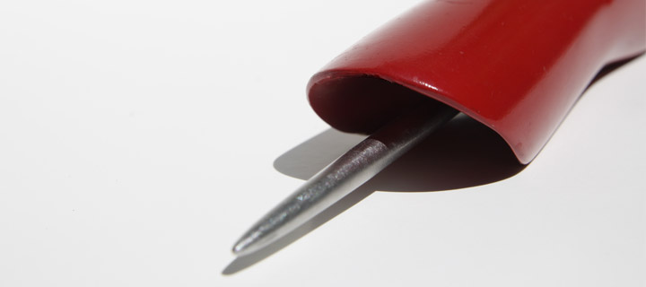 The new round "blade" was then recessed deeper into the handle to reduce the difficulty of getting started. Now that your fingers are closer to the tip, it's easier to get the tip into the corner of the envelope even if your hands shake.